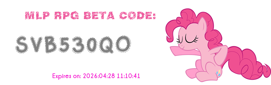 Everyone gets a unique BETA code by visiting this page, and you can use this code to gain access to MLP RPG Part 2 BETA. However, each key expires in 3 days and once it expires you cannot get a new key; so you are out of BETA.